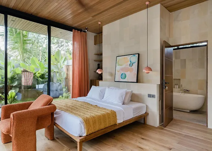 De 4-slaapkamer The Twins Jujungan Villa Ubud biedt een bubbelbad voor een ontspannen ervaring en bevindt zich op 5 km afstand van de Folk Pool & Gardens zwembad en tuin. De villa ligt op 10 minuten met de auto van de Tegalalang rijstterrassen, nodigt gasten uit om te genieten van het uitzicht op het zwembad vanaf een terras met een zwembad.